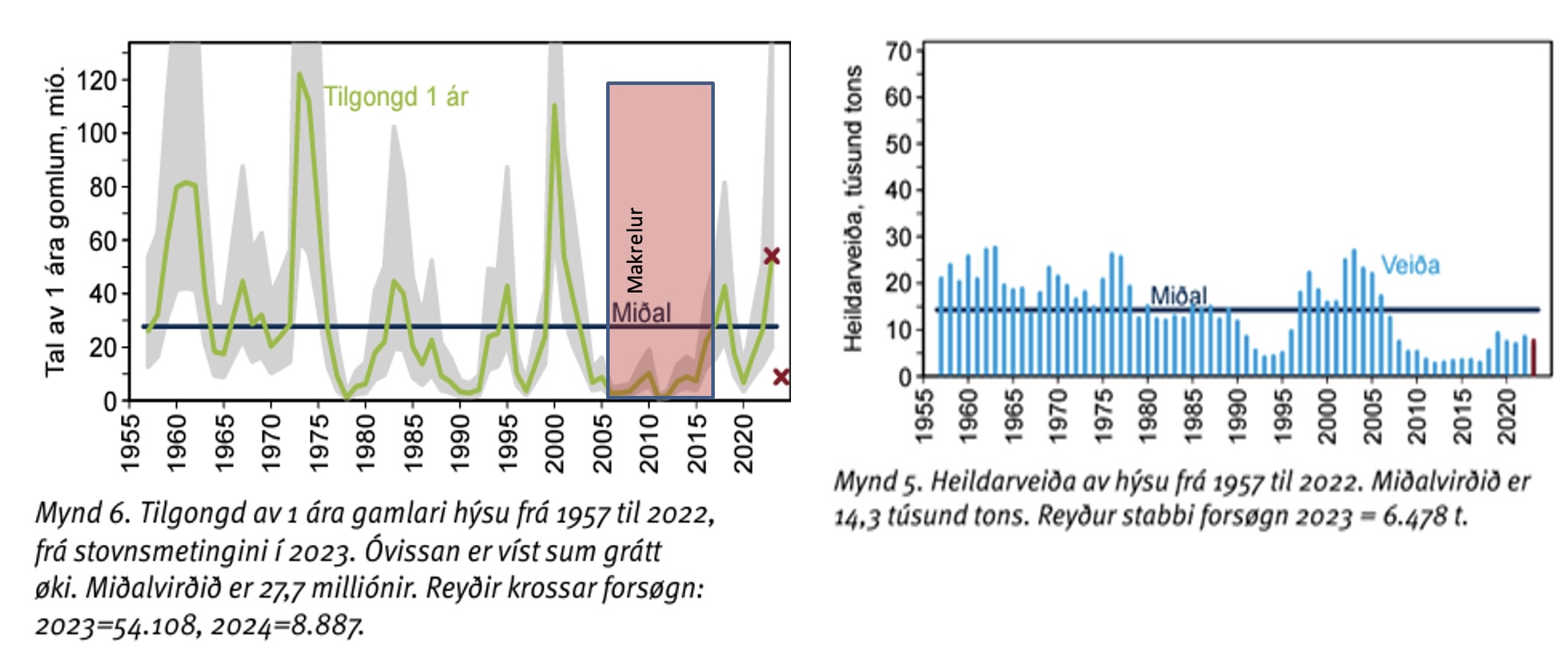 Eins og fyri tosk og upsa, so setur Havstovan eisini M fyri hýsu til 0,2 óansæð um tað er nógvur makrelur inni á grunnun vatni ella um makrelurin er ytri á sjónum.