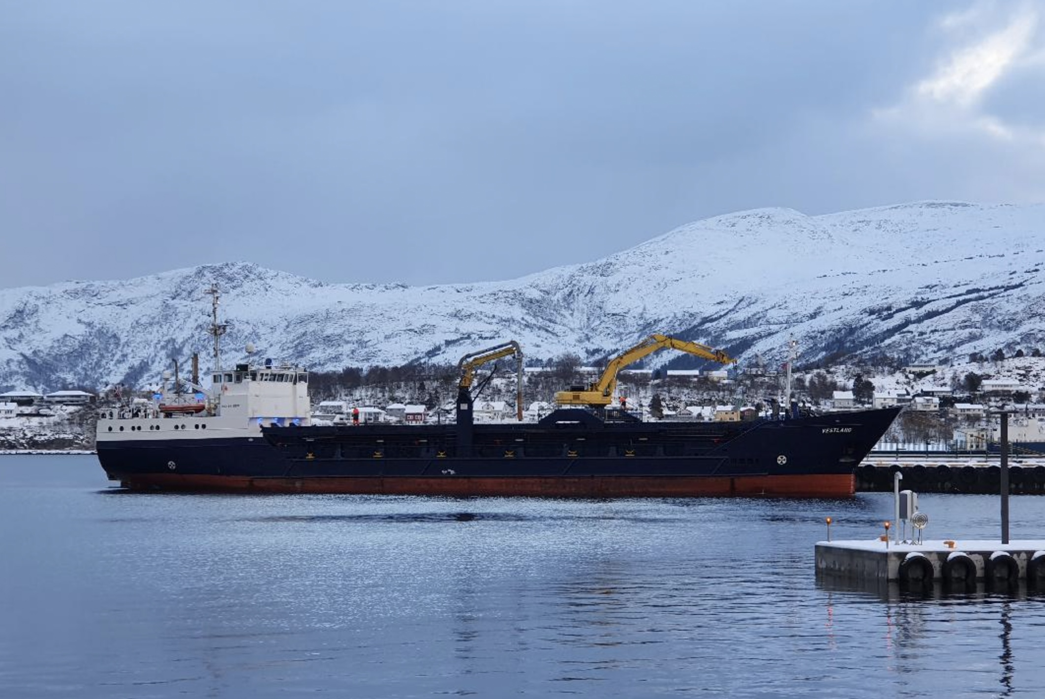 Ein sleipibátur varð skjótt boðsendur og tryggjaði skipið, sum síðani fór til bryggju, har tað bíðaði eftir at lossa við fóðurverksmiðjuna, til hann makaði vindin.