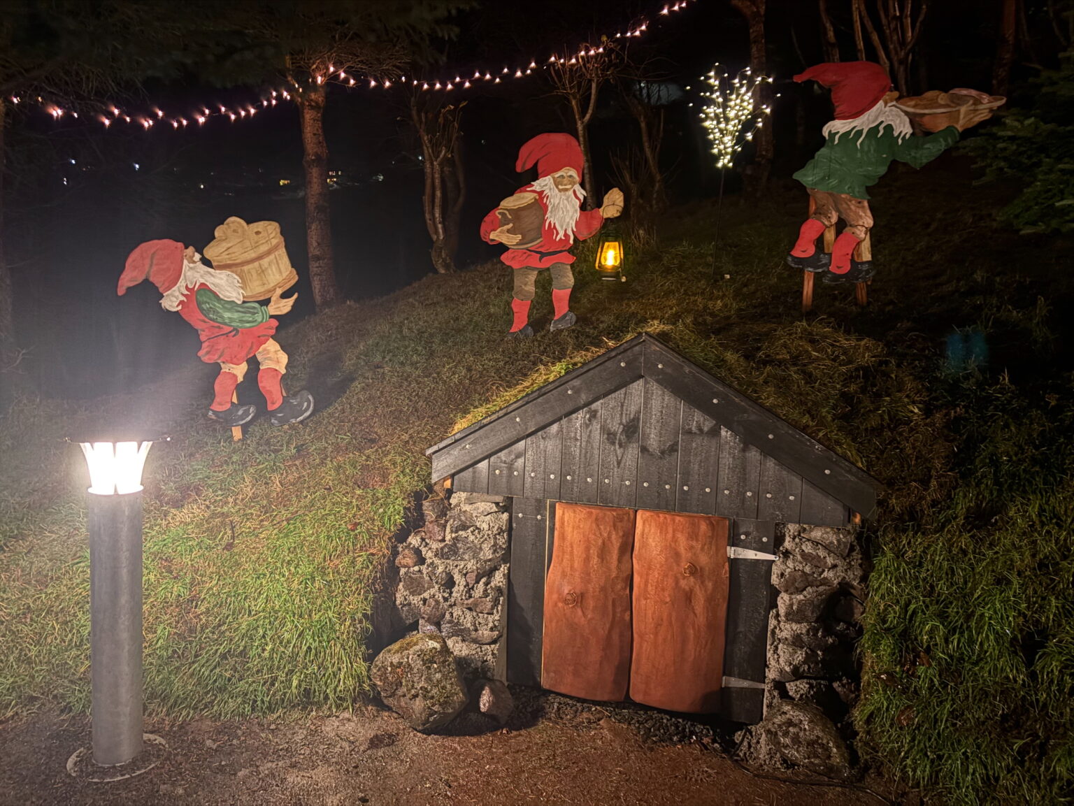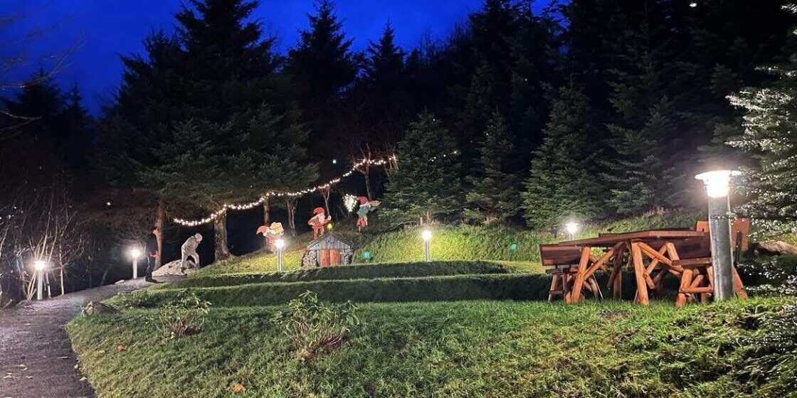 Fyri nøkrum árum síðan vórðu lyktapelar settir framvið øllum gøtum í viðarlundini, men stóra ovala økið, ið stundum er karmur um tiltøk og sum nógv fólk í Vestmanna annars brúka, hevur ongantíð havt nakra streymveiting. Hetta er nú broytt. Lampur eru settar upp og í framtíðini verður munandi lættari at skipa fyri tiltøkum, tí streymveiting er á staðnum.