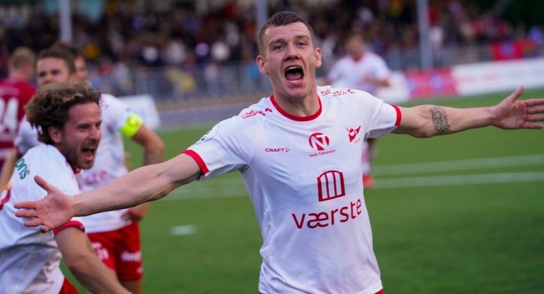 Jóannes Bjartalíð legði Fredrikstad á odda við einum brotssparki tá 23 minuttir vóru leiktir.
