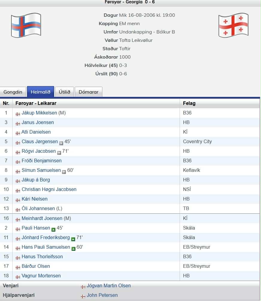 HER ber til at síggja málini frá dystinum Føroyar-Georgia 0-6 (0-3):
