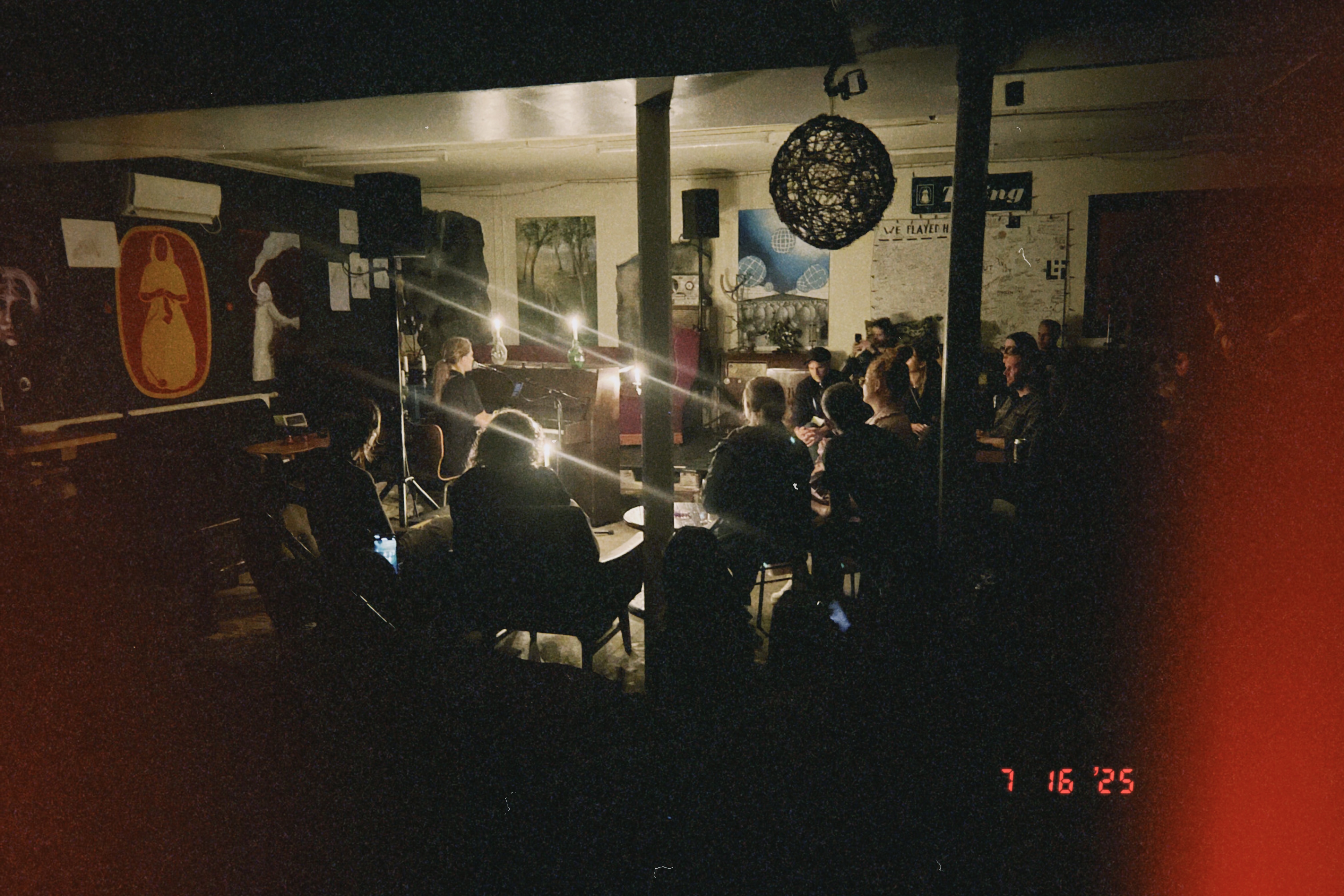 Sí her eitt lítið brot frá kvøldinum. Leggið til merkis, hvussu fjald Elinborg var í myrkrinum, og hvussu kløkkir áskoðararnir vórðu av brádligu ljóðunum, ið komu burtur úr ongum.