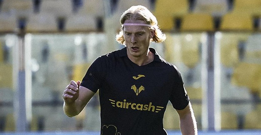 HER ber til at síggja hæddarpunktini frá dystinum Sassuolo-Hellas Verona 3-0 (2-0). Andrias sæst við nummar fimm á rygginum: