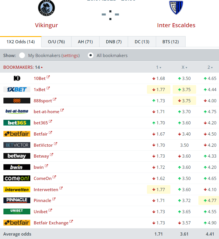Víkingur er favorittur hjá 14 altjóða veddingarfyritøkum at vinna dystin í kvøld.