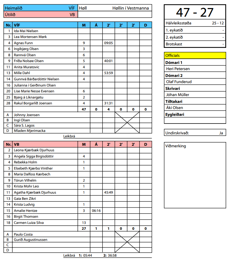 HER er dómaraseðilin hjá HSF frá dystinum í Vestmanna: