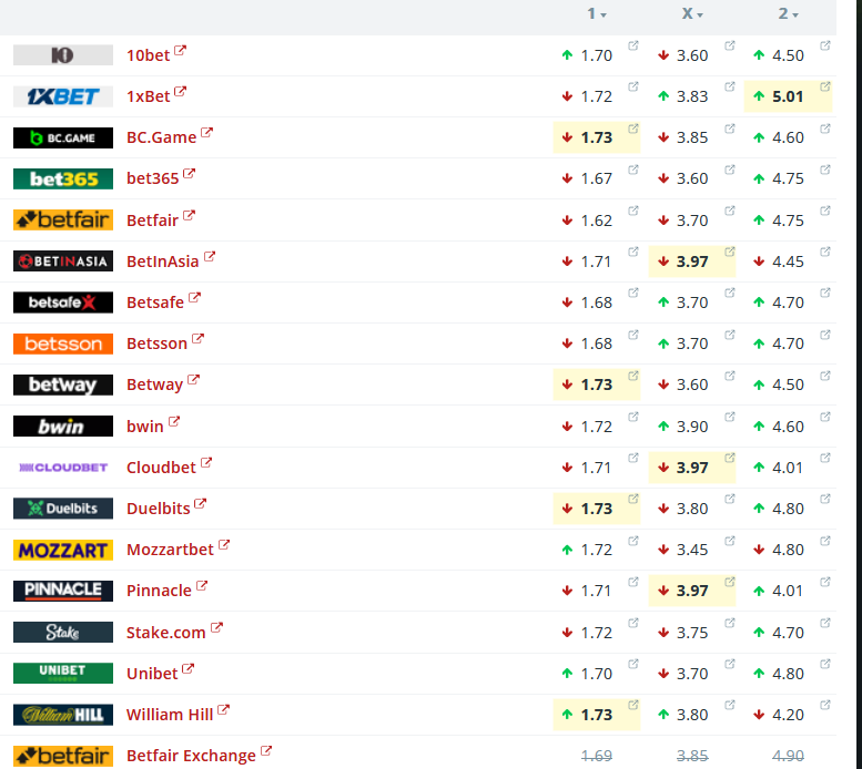 Oddsini upp á javnleik liggja millum 3,45 og 3,97.