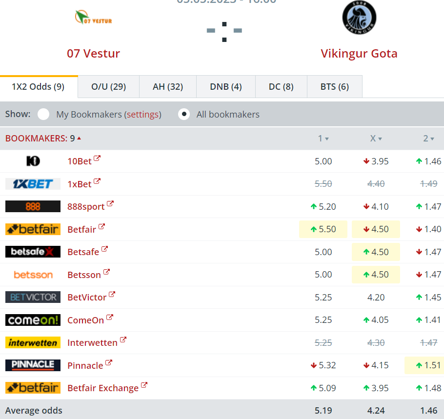 Víkingur er favorittur hjá níggju altjóða veddingarfyritøkum, ið lata odds upp á dystin.