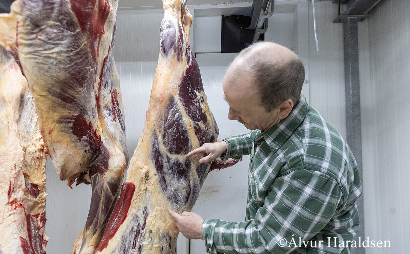 Poul sigur, at her hanga neytafjórðingarnir fyrst í kølirúmi í einar 2-3 vikur í 3-4 stigum, har teir búnast, og síðan verða fjórðingarnir skornir og vakumpakkaðir – alt eftir, hvussu viðskiftafólk vilja hava neytakjøtið.