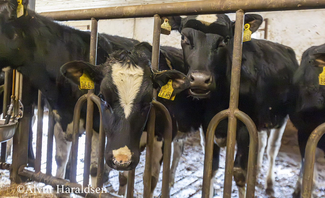 - Ein kúgv etur umleið 30 kilo av stráfóðuri um samdøgnið, og eru 100 neyt, skulu trý tons av stráfóðuri til um døgnið. Tað gongur eisini nógv kraftfóður – helst eini 50 tons um mánaðin, tá kríatúrini eru so mong sum her hjá okkum.