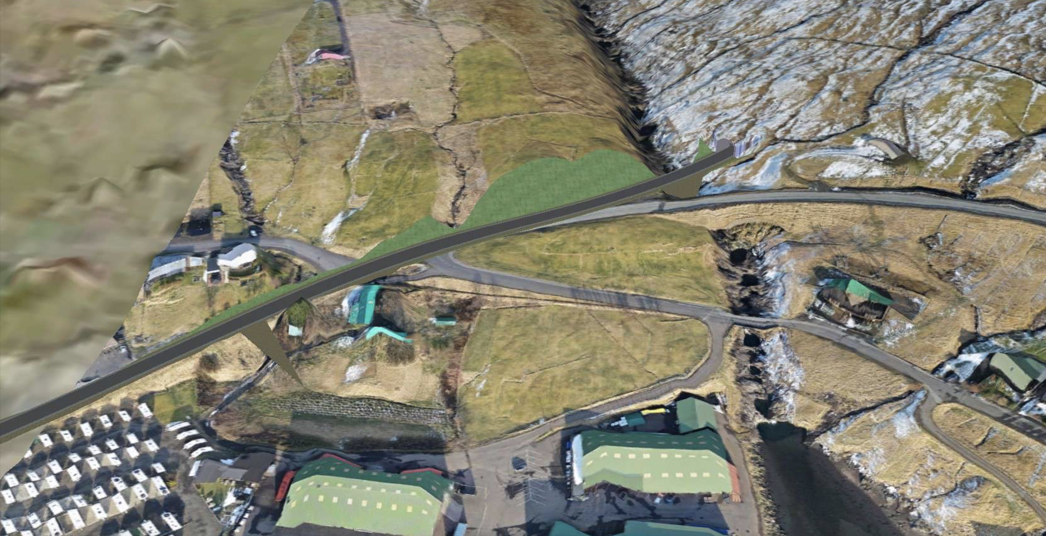 Men síðani hava røddir verið frammi um, at tað er betri at broyta linjuføringina, so at tunnilin kemur við verandi landsveg oman í bygdina í Vestmanna. Og síðani hevur Landsverk lagt eina nýggja linju.