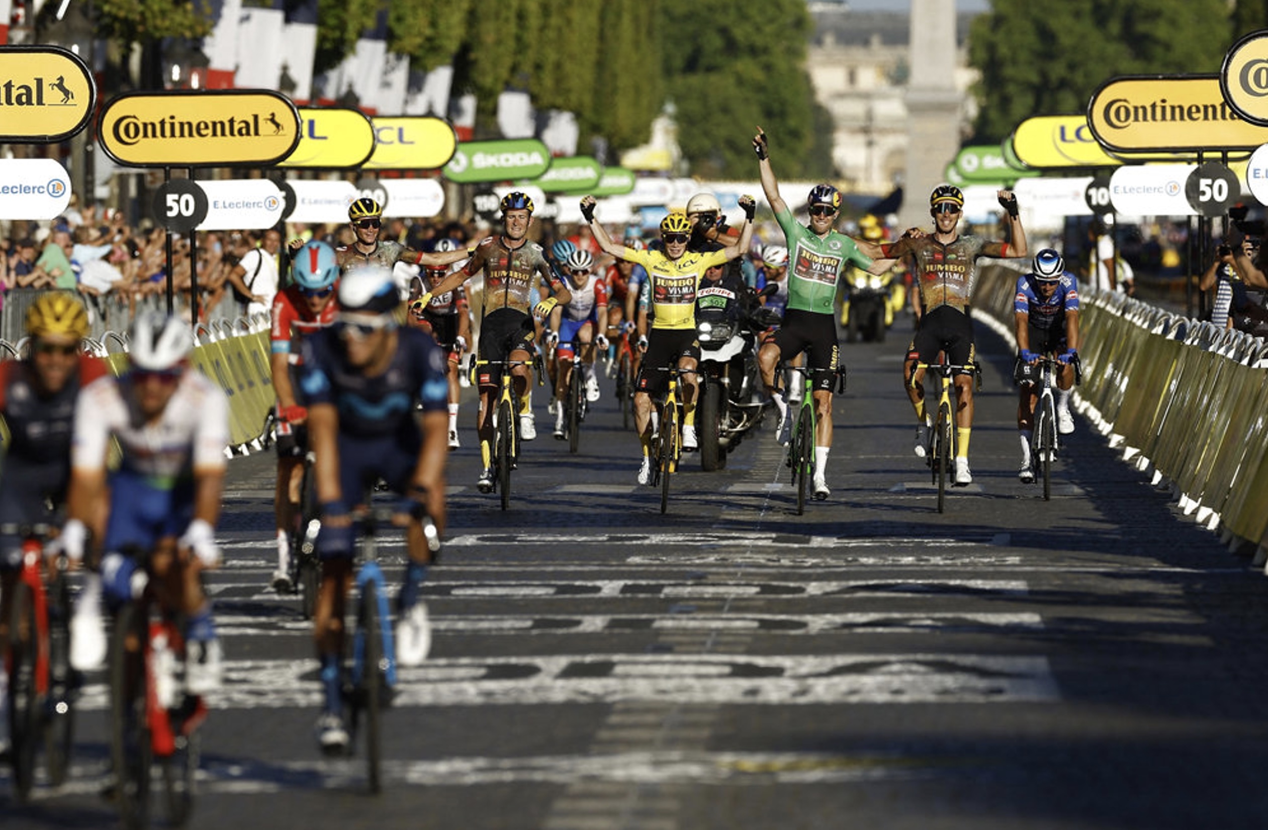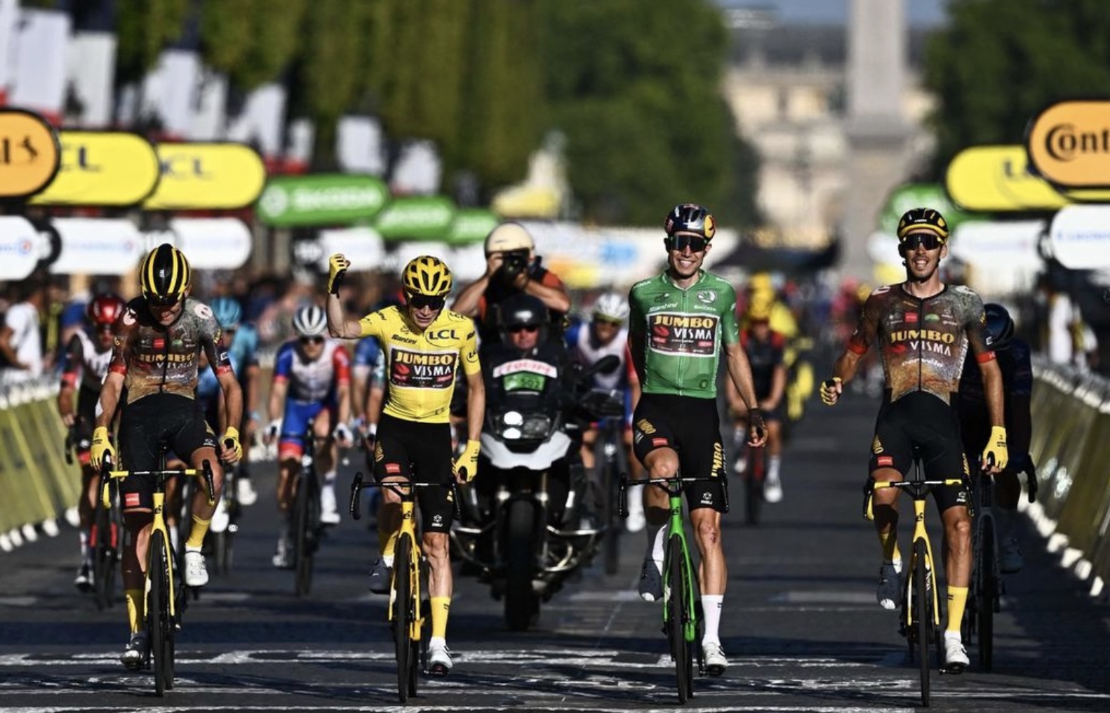 Eitt sindur aftari í feltinum hevði Jumbo-Visma-liðið savnað seg um Jonas Vingegaard, og saman koyrdu teir yvir málstrikuna, tá teir allarskjótastu vóru farnir við teinasigrinum.