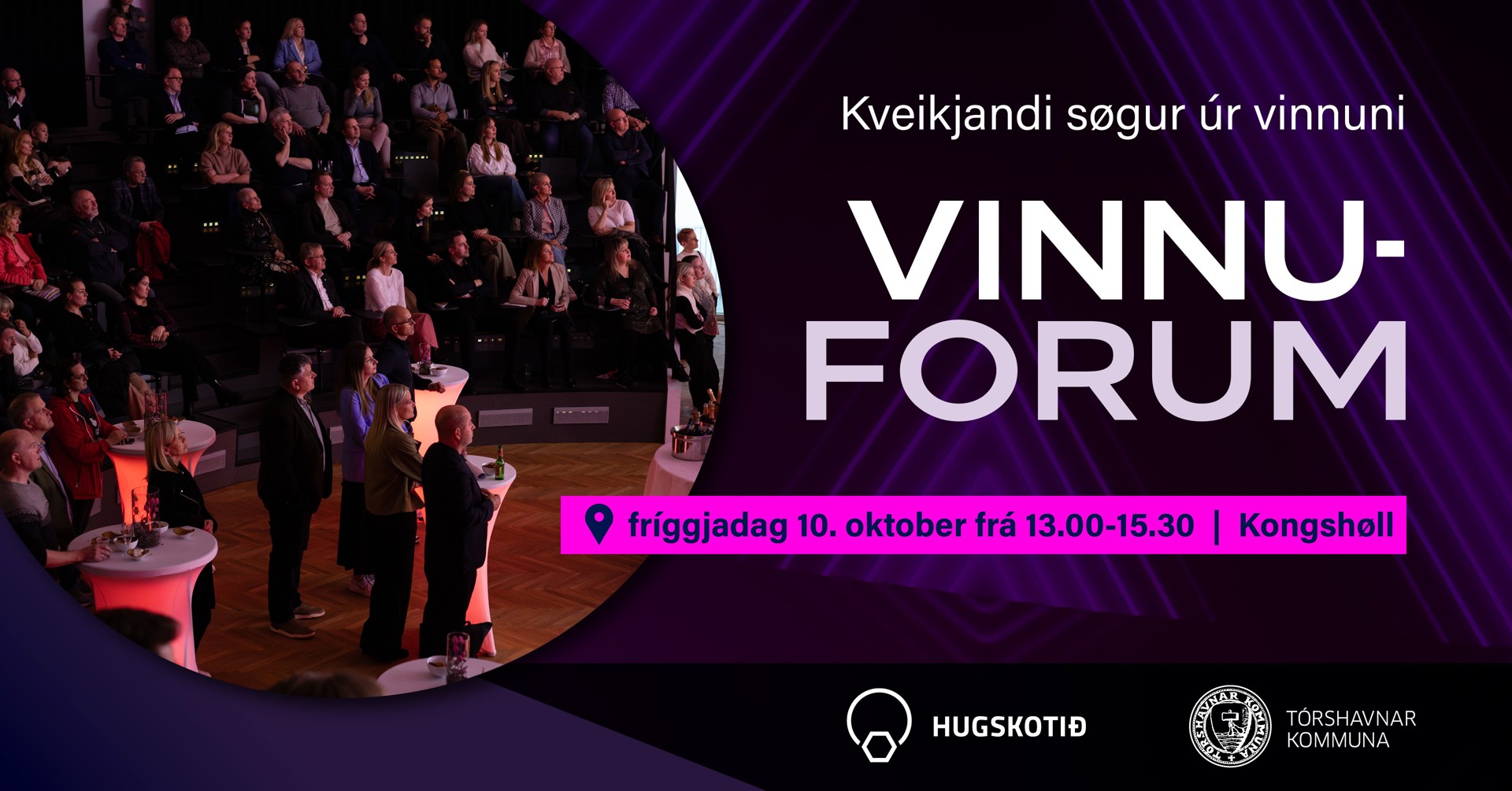 Vinnuforum er eitt afturvendandi tiltak hjá Tórshavnar Kommunu og Hugskotinum, har bjóðað verður inn til ein spennandi seinnapart, har vinnan og kommunan fáa høvi at hittast til netverkan og íblástur. Hetta er eitt tiltak, sum hevur til endamál at fáa tættari samstarv millum vinnu og kommunu, ið eisini er ein fortreyt fyri vøkstri og framburði.