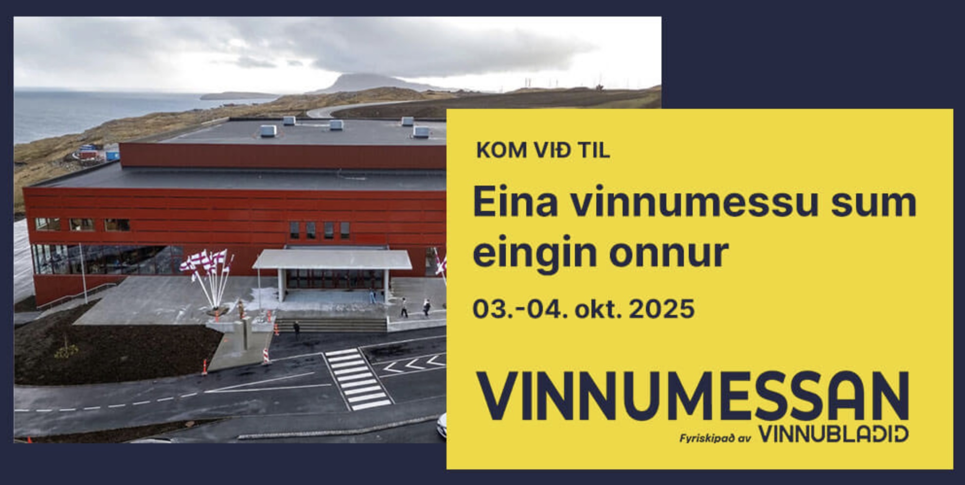 Vinnumessan verður 3. og 4. oktober frá kl. 10:00 til 20:00 í stórhøllini við Tjarnir.