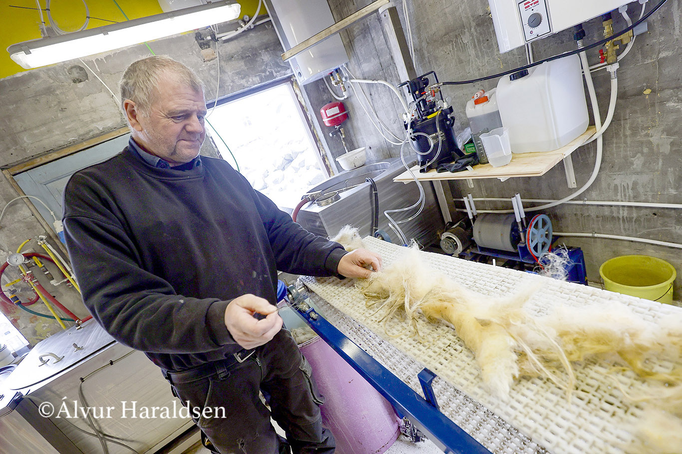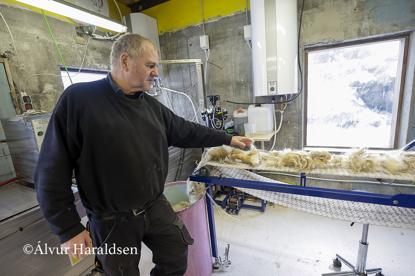 - Tað hevur týdning at einki fer vekk. Vit taka broddin burturúr og gera eina vøru burturúr ullini við broddi, og aðra við ull uttan brodd, og hesar kunnu eisini blandast saman.