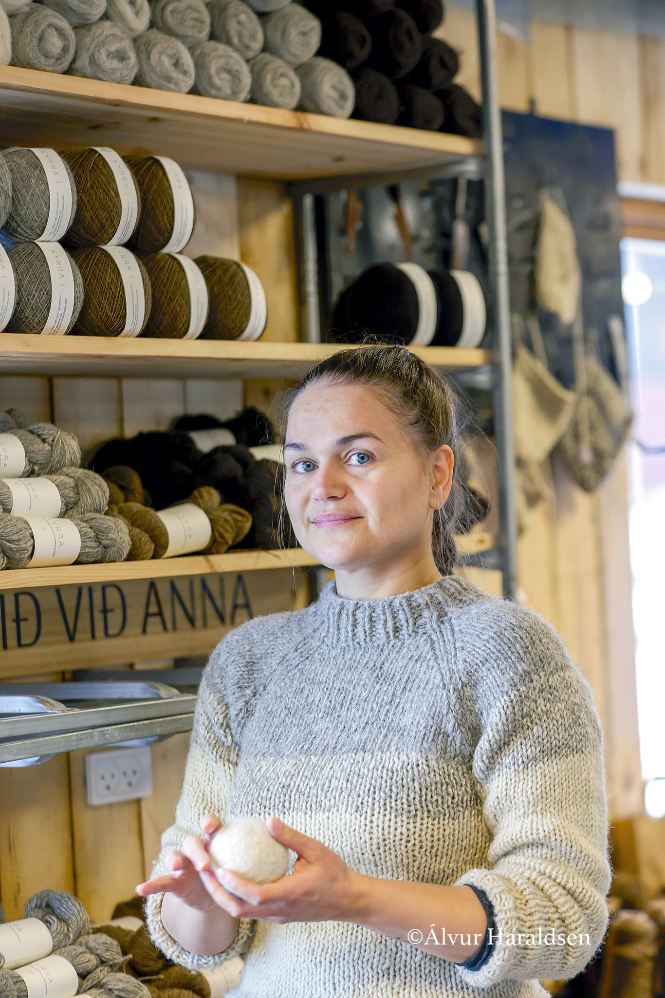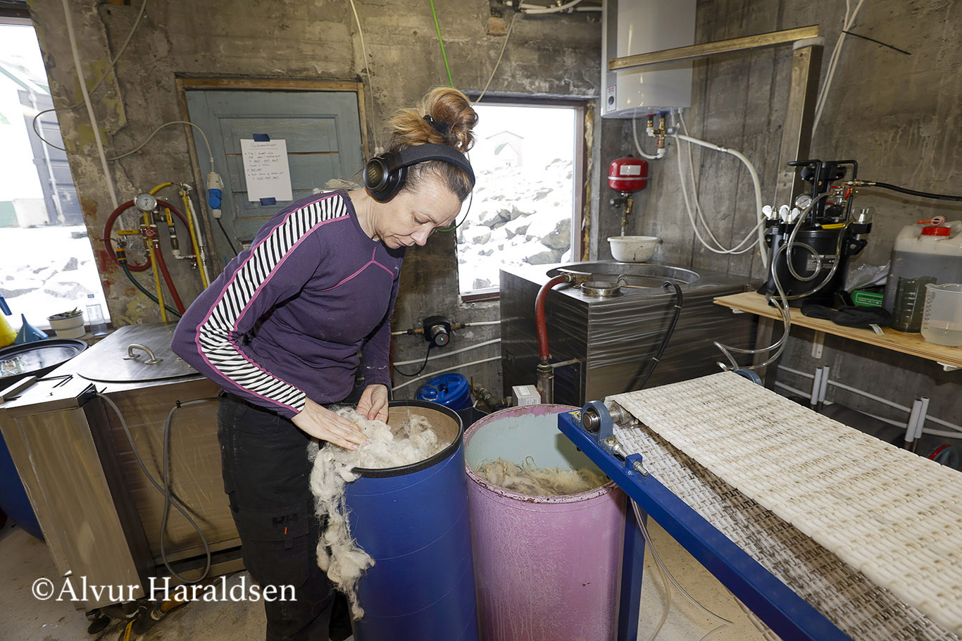 - Vit royndu okkum fram og sóu at vøran var góð. Vissi tú vaskar og spinnur í smáum, og ikki sendur ullina av landinum til eitt stórt vaskaríið, soleiðis sum føroyingar hava gjørt við ullina í fleiri ár, so fæst gott úrslit burturúr. Vit hava brúkt nakað av tíð at læra okkum at brúka maskinurnar, men tað fyrsta vit løgdu merki til var at vøran riggaði.