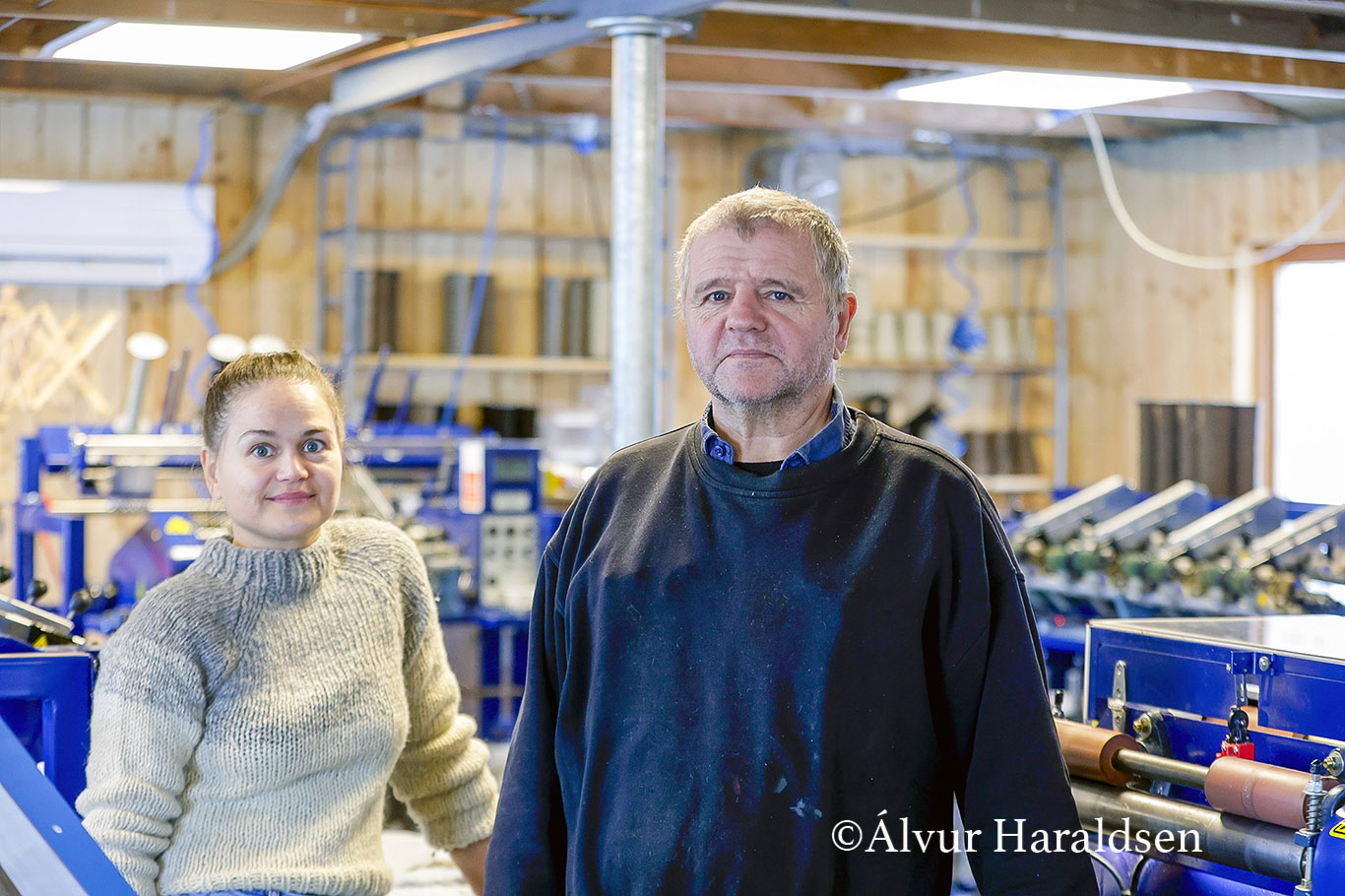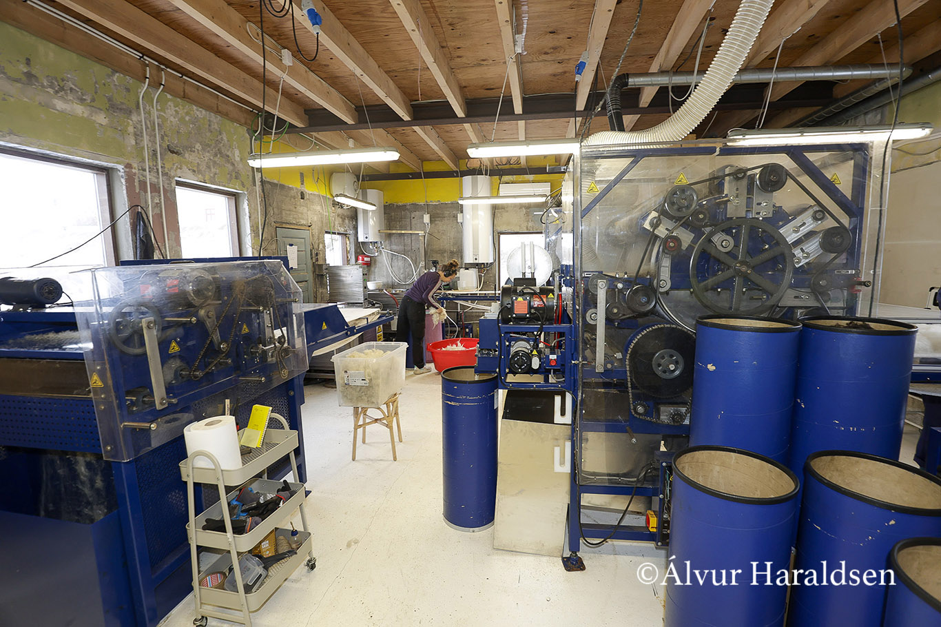 Maskinurnar komu á sumri í fjør, og í februar fór framleiðslan av álvara í gongd. Tvey fólk eru sett í starv afturat teimum báðum.