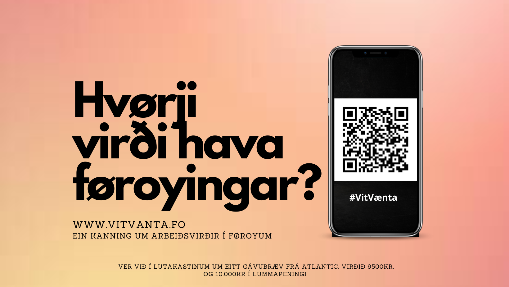 Ein umfatandi spurnakanning, ið kallast Vit vænta, er nú skotin ígongd. Endamálið við verkætlanini, er at eyðmerkja tey ymisku arbeiðsvirðini sum gera seg galdandi í trimum ymiskum ættarliðum í Føroyum, ættarlið Z (fødd 1995-2010), ættarlið X (fødd 1960-1979) og ættarlið Y (fødd 1980-1995)