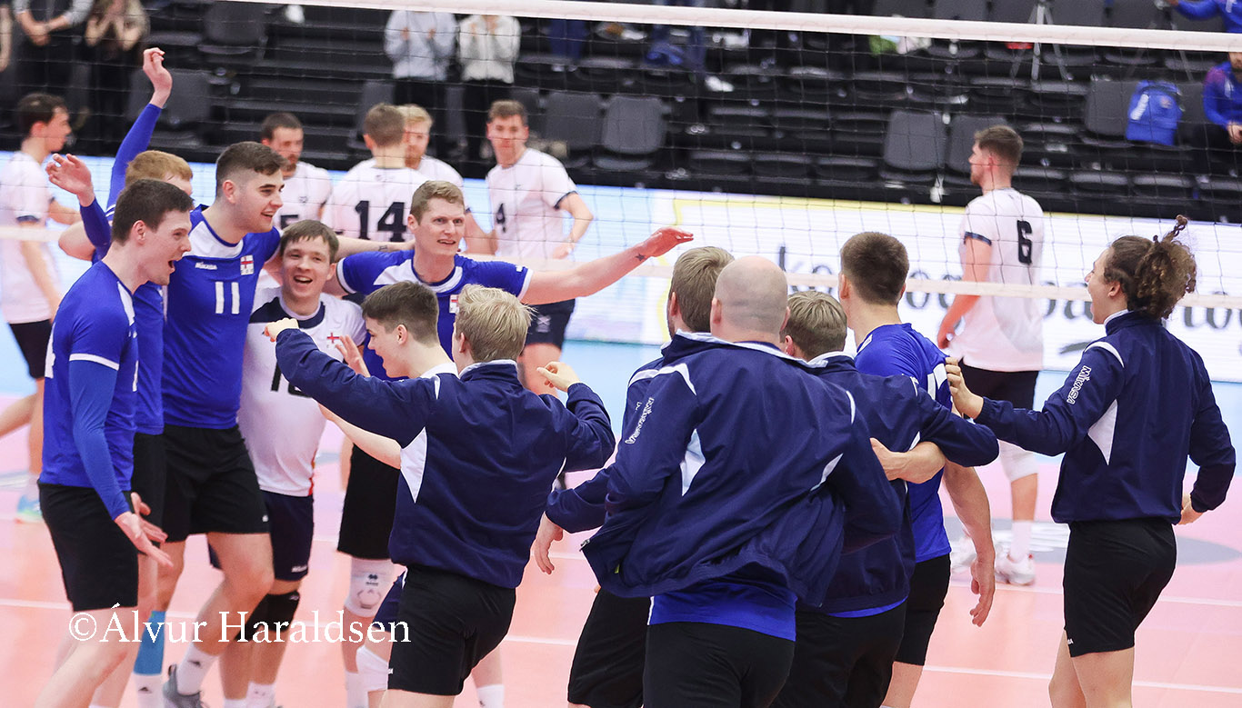 San Marino hevur fimm stig, Føroyar hava fýra stig, Skotland hevur trý stig og Ísland er aftast við ongum stigi. Ígjár vann Skotland 3-1 á Íslandi (19-25, 25-23, 25-21, 25-19).