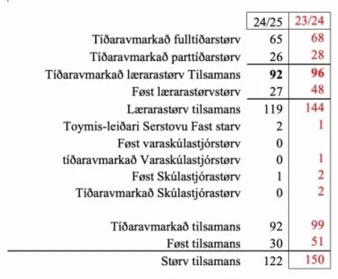 Tað vóru altso 65 fleiri tíðaravmarkað størv enn tað vóru lærarar í farloyvi.